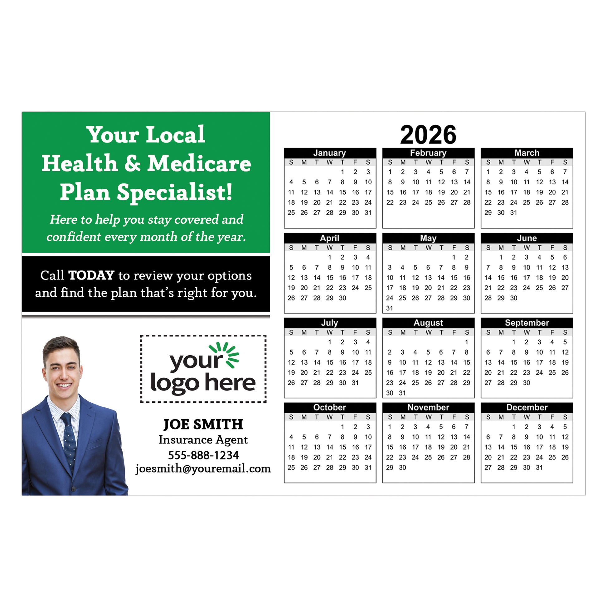 Keep your brand front and center all year with our personalized calendar magnets. Unlike paper handouts, they stick to fridges, filing cabinets, or any metal surface, making them a practical and lasting reminder for clients. Perfect for health insurance agents, these magnets are functional, eye-catching, and ideal for giveaways at events, open enrollments, and client appreciation gifts.